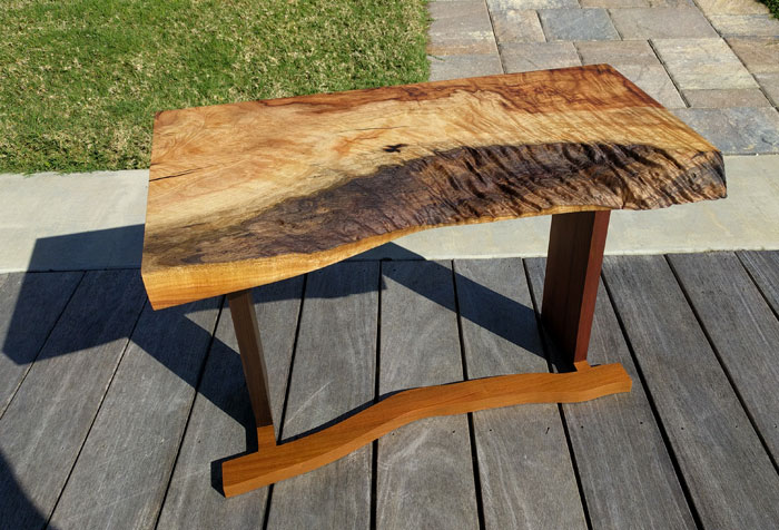 This Camphor side table really turned out fantastic. The front "Toe" piece on the base was hand carved to match the profile of the exisiting top piece. The rippled grain of the wood looked three dimensional and the chatoyance (cat's eye like shimmer) was just beautiful.